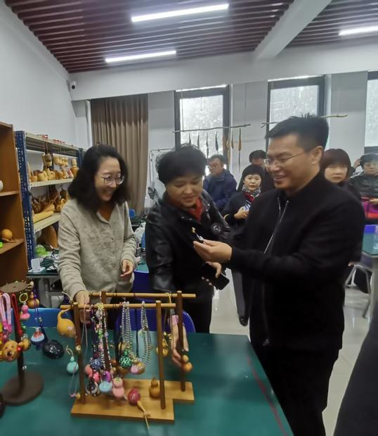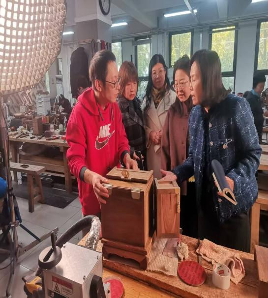 座谈前,王景江副局长一行先后走访了艺术工程学院木艺工坊、杨柳青年画、葫芦制作等多个非遗项目工作室,详细观摩非遗技艺展示与实践场景,对我校特色培训课程与实训条件表示了充分肯定。